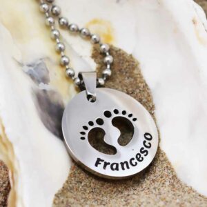 L’incisione profonda contribuisce a dare alla collana un aspetto molto ruvido. Tuttavia, come si può vedere da una delle foto della galleria, la medaglietta è liscia e lucida sotto particolari angolazioni di luce.