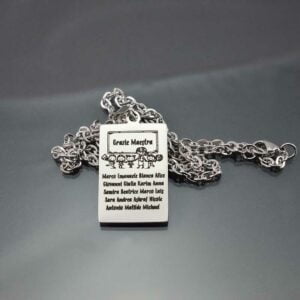 Nel caso vogliate incidere qualcosa anche sul retro del pendente, dovete selezionare la scelta nel campo “Fronte Retro“. Il costo aggiuntivo per l’incisione sia sul fronte che sul retro è di 5 Euro.